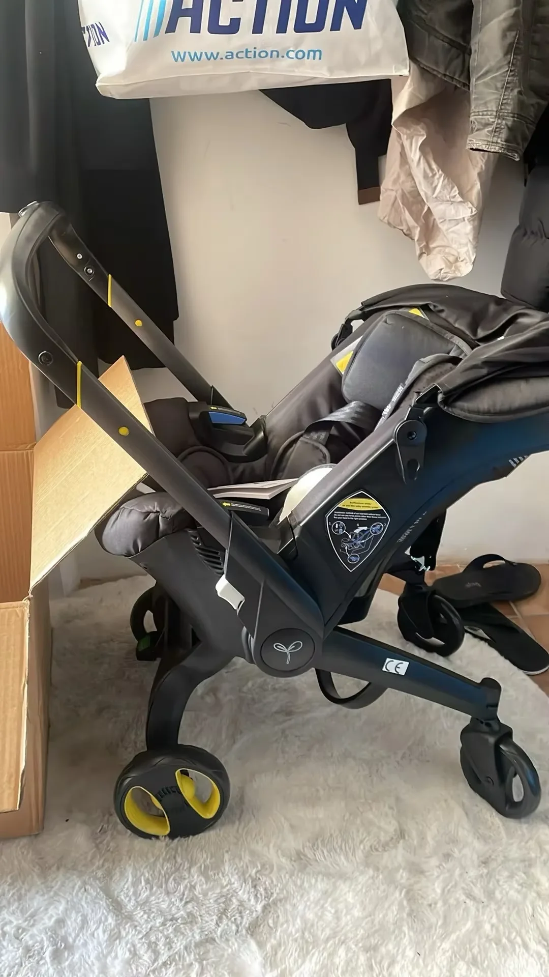 - Ein integrierter Autositz, der sich mit einem Handgriff in einen Kinderwagen verwandeln lässt – perfekt für den Alltag und spontane Ausflüge.